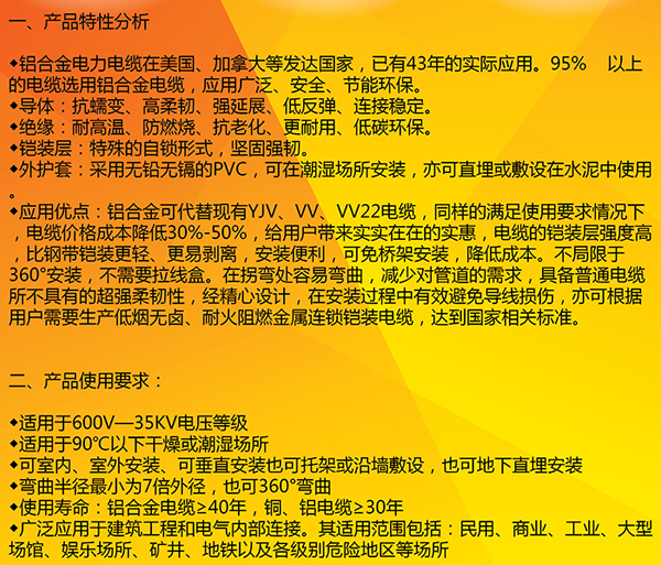 鋁合金電纜:鋁合金電纜ZR-YJLHV 瀏覽:3631